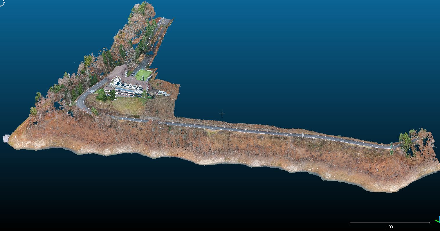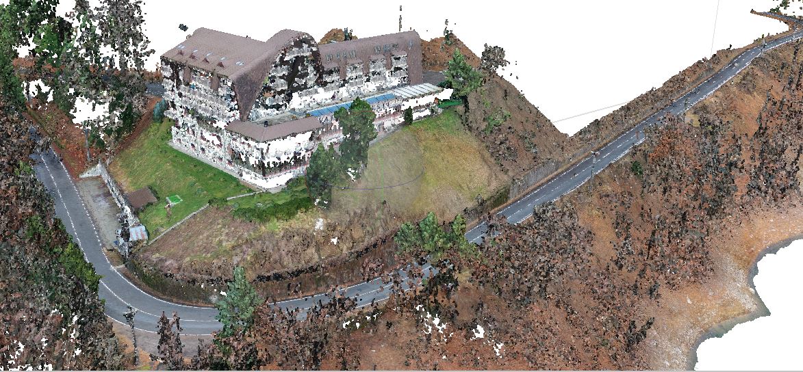 Achizitia de date: Această suprafață studiata de 50000mp a necesitat o masuratoare 3D de 120min. Pentru a asigura precizia de 1-4 cm am utilizat 25 puncte GPS RTK pentru post-procesare ulterioară și evaluarea erorilor.